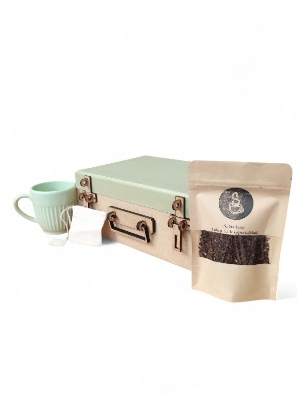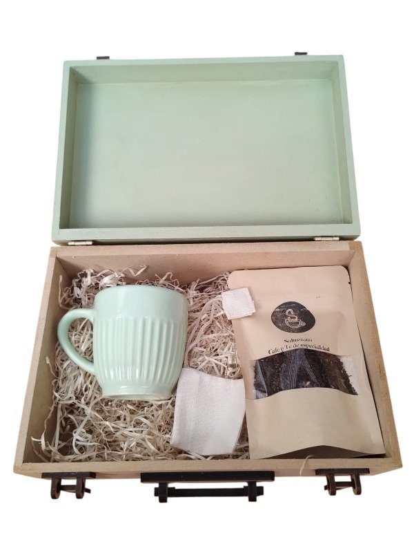 Contiene un maletín de madera, taza decorativa, saquito reutilizable y 25gr de Té Blend Red Velvet